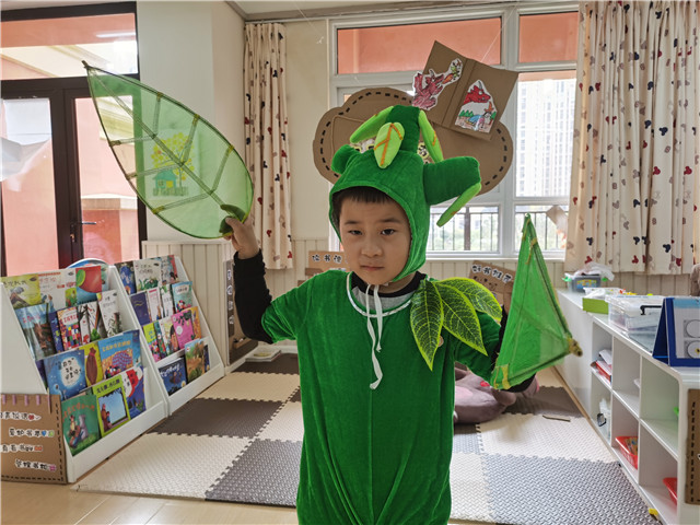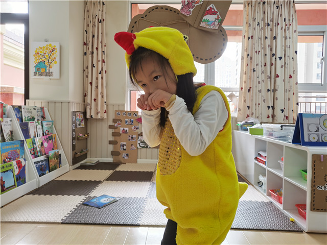 活动前期,教师在班级中推行“好书分享”和“读书漂流”活动,鼓励家长在家中引导和帮助孩子进行绘本讲述。表演开始了,班级里时而静谧无声,时而紧张热闹,每位小朋友都表现得落落大方,语言生动有趣,声情并茂。有的孩子甚至做了充分的准备,带来了服装和道具。《母鸡萝丝去散步》、《恐龙队长》、《快看植物在动呢》等等,这些有趣的的故事让孩子们懂得了许多的道理,同时也感受到了快乐。