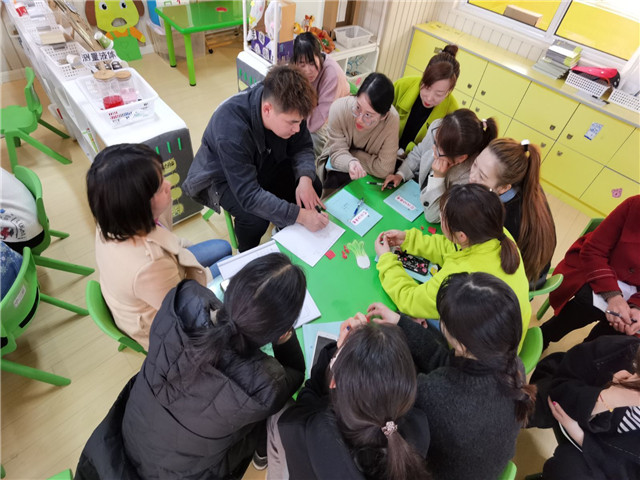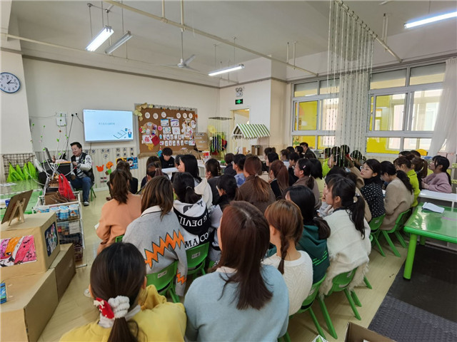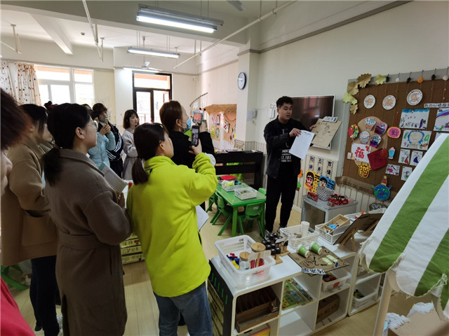 上学期末,天宁区男教师联盟组织所有男教师参观了新北区三井中心幼儿园,本学期初我园三位男教师展开行动,以一个班级为样板开始了班级环境大整改。在整改过程中,有短板、有疑虑、有困惑,但通过交流、寻求帮助、查找书籍等方式收获了成果与喜悦。在园本教研活动中三位男教师把遇到的问题提出来和教师们交流探讨,在把学习到的理念传递给教师们的同时,也有了思维的碰撞并收获更多的金点子。教师们通过观摩现场,针对每一个区域的布置、材料投放、幼儿操作等进行了交流研讨,对班级环境创设有了更加清晰的认识。