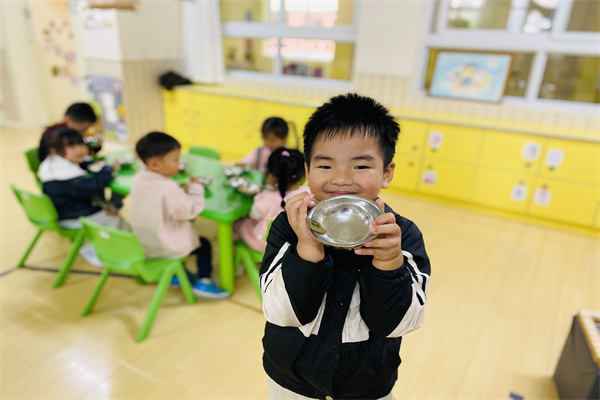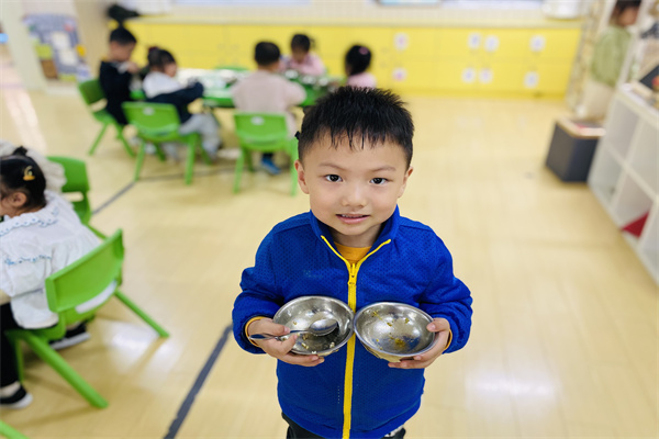 首先,师幼共读《浪费粮食的猪猪》绘本。孩子们了解到当我们在浪费食物的同时,世界上还有很多人在挨着饿。接着发起倡议“进餐不剩一粒米、不剩一颗菜的光盘行动。”今天午餐,孩子们都以“吃光自己碗里的饭菜”实际行动践行爱惜粮食的美好品质。小博是午餐第一个完成“光盘行动”的小朋友,紧接着就是琪琪和彦彦……一个接一个的端着小碗说:“老师,你看我吃的多干净!”