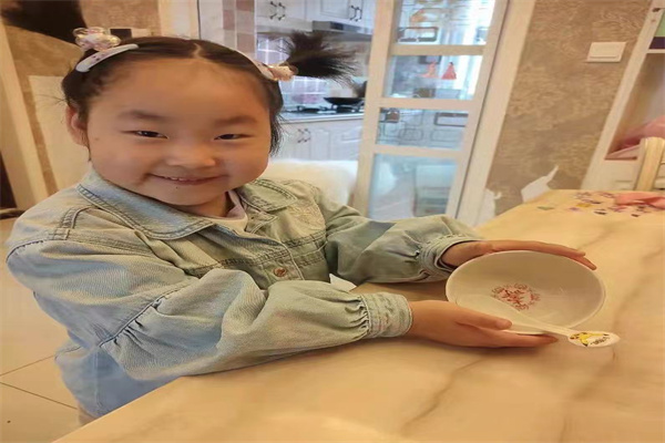 晚上回到家,很多孩子也能“光碗”,瞧,爸爸妈妈们发来的照片,孩子们吃完饭菜的碗像洗过一样干净。