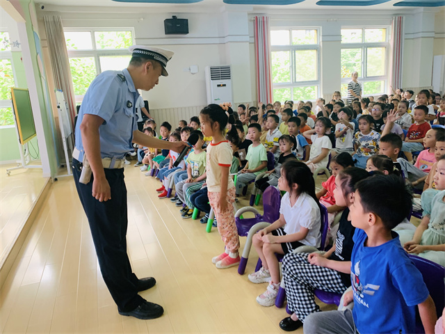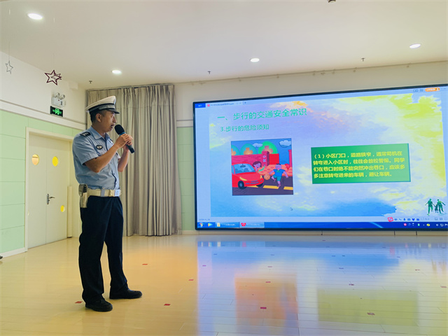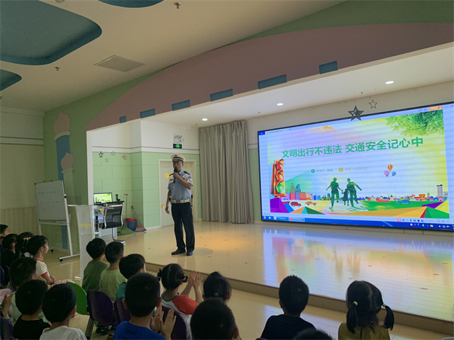 为了提高幼儿交通安全意识,培养文明交通行为习惯。9月8日下午,香溢紫郡幼儿园特邀交警大队陈晓警官给大班幼儿进行交通安全讲座。