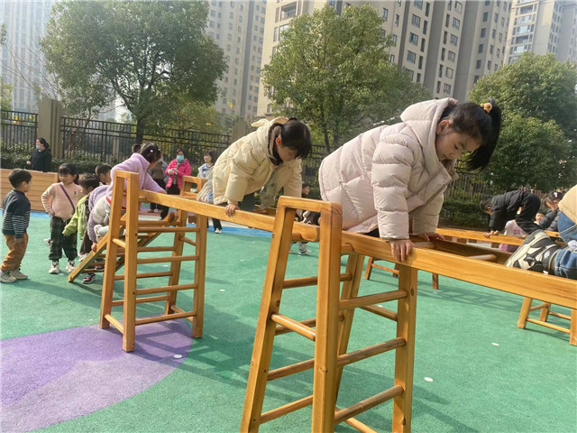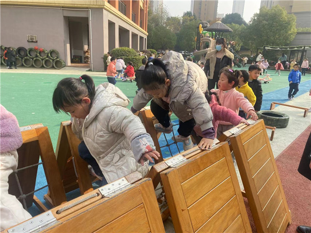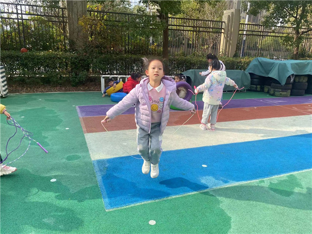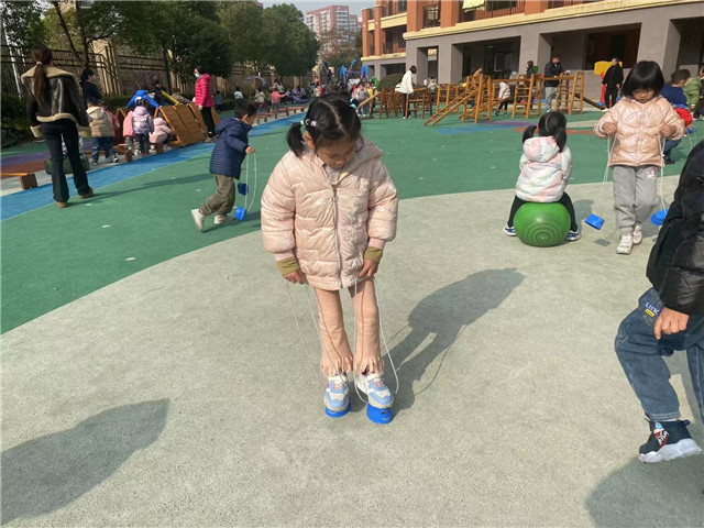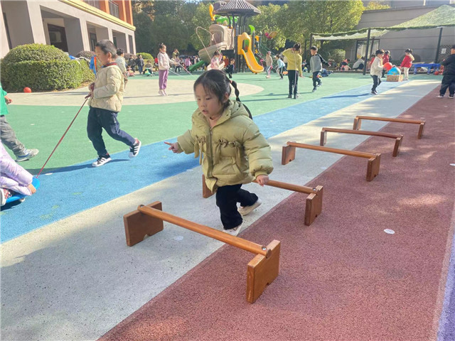 2023年12月15日,常州市香溢紫郡幼儿园的小朋友们情绪高涨地活跃在操场上,开展着丰富有趣的户外体育活动。他们有的“跨栏”、有的“走独木桥”、有的“越过水坑”等,练习了踩攀爬、跨越和立定跳的基本动作;他们踩高跷、跳格子,在一次次尝试中找到了保持身体平衡的方法,也锻炼了胆量;有的大班的小朋友自主跳绳、中班的小朋友拍球,有的探索怎样接的住沙包的方法,有的在探索七彩圈的不同玩法,动作的灵活性得到了发展。伴随着活泼、欢快的音乐,幼儿园的操场上一片欢声笑语,活动中老师根据本班幼儿的年龄特点和兴趣特点来开展活动,充分发挥孩子们的主动性。